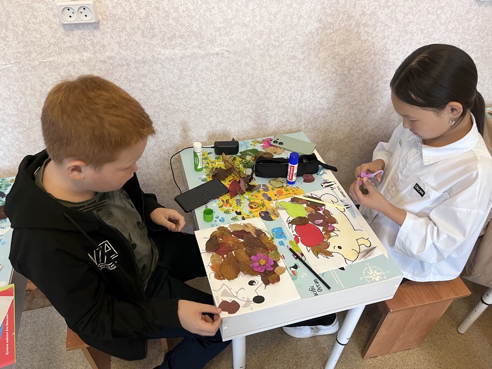 29 сентября дети собрались в уютной обстановке. Специалист раздала подготовленные образцы и материалы для работы, дети с удовольствием приступили к изготовлению поделки. У каждого свое видение, фантазировали, рассуждали, смеялись, задавали вопросы. Рассказывали, как они провели последние теплые дни в выходные, кто-то съездил с родителями в лес, полюбоваться красками осени, с пикником на свежем воздухе, вторые ездили на рыбалку, там своя атмосфера. У многих осень любимое время года, ведь осень ассоциируется с разноцветными листьями на деревьях, листопадом, сбор урожая, теплыми и уютными вечерами, пирогом с корицей…
