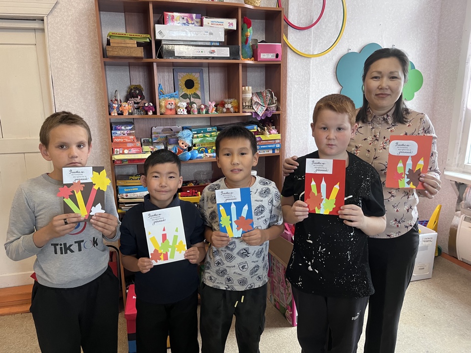 2 октября, в преддверии праздника специалисты отделения помощи семье и детям «Дети в семье» ОГБУ «УСЗСОН по Нукутскому МО пригласили детей, для изготовления открытки, своими руками, для учителей.
