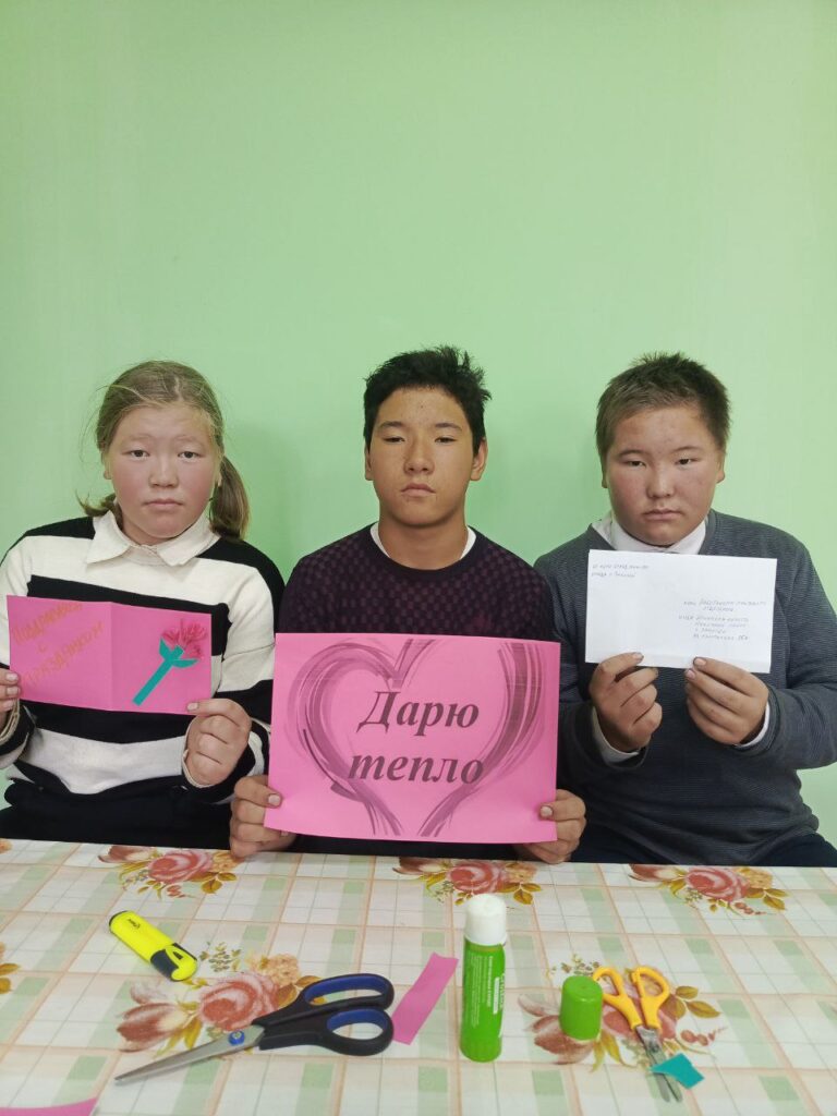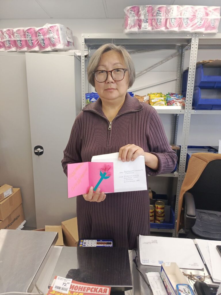 В п.Новонукутский дети вручили открытки работникам почтового отделения, пожелали здоровья, счастья и профессиональных успехов.