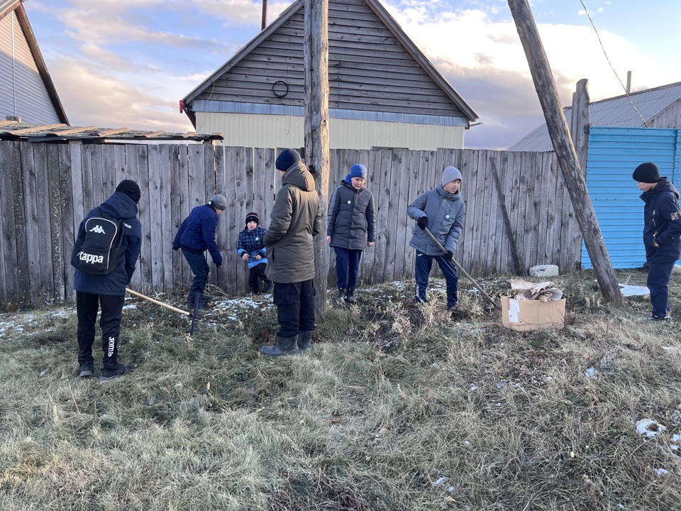 Ребята оказали посильную помощь маме. Вооружившись граблями, собрали траву и листву, а так же мусор около домовой территории. Светлана Александровна поблагодарила ребят за оказанную помощь. Угостила ребят печеньем. Отряд министра преподнес Гене небольшой подарок.